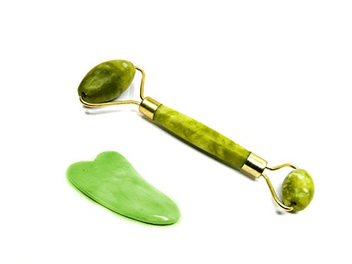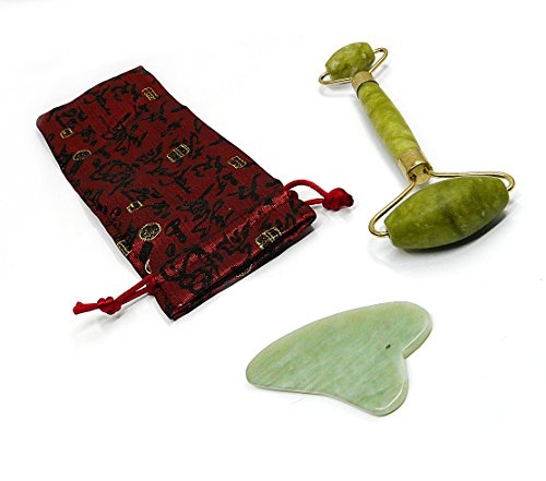 Keep your skin glowing and beautiful with 100% Natural Jade Chinese Jade Roller and Guasha Beauty Set. Now this 1000 year old Chinese beauty secret can be yours. Use the power of jade to fight aging skin, tighten and tone, and reduce wrinkles. Puffiness and other signs of stress can instantly be wiped away, leaving you fresh, beautiful and relaxed. Used on the face and neck, your muscles can also be massaged and relaxed giving you an amazing feeling. Pamper your skin with a cool and refreshing feeling. First use the jade gua sha tool for an invigorating and rejuvenating massage, then use the jade roller to relax and tone your skin. The feeling of the cool natural jade is one-of-a-kind, and nothing else can have your skin looking and feeling so vibrant. Easy and Simple Instructions for Mei Chi Anti-aging Jade Facial Roller + Gua Sha Scraping Massage Jade Step 0: Refrigerate for extra cool refreshing sensation. Step 1: Use the Gua Sha Scraping tool, start by scraping from the nose outward to the ears. Continue by rolling out from the chin along the jawline. Step 2: Scrape from the collarbone upwards toward the chin, to drain lymphatic waste and smooth wrinkles in the neck area. Step 3: Scrape along the forehead upward and outward from the middle point between the eyebrows. Step 4: Scrape horizontally above and below the eyes to eliminate puffiness and dark circles under the eyes. Step 5: Repeat above steps with Jade RollerFeature