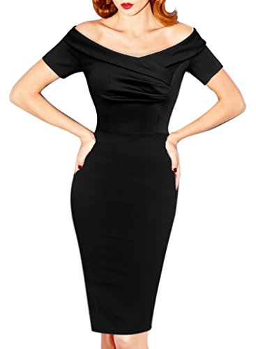 VfEmage Women's Elegant Vintage Ruched Off Shoulder Party Cocktail Wiggle Dress 500 BLK 18