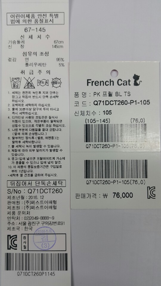 소재-면 95% 폴리우레탄 5%