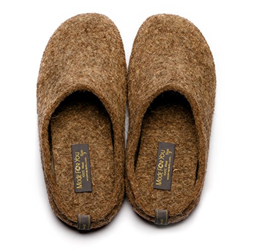 -. Feature : LIGHTWEIGHT, SOFT AND COMFORTABLE- 100% wool felt is a very flexible material that provides support to joints and different pressure points on the body. This feature makes it recommended for those who suffer from painful rheumatism or arthritis as it decreases triggers for pain. 100% wool is lightweight material that is considered one of the strongest and most resistant in the market today, which means that your slippers will last you longer. / EASY SLIPPING IN AND OFF DESIGN- Bare foot pleasure. Our wool slippers are with non-slip rubber soles and the Arch support cushion insole to cushion the heel with every step. This provides immediate relief from the discomfort of heel pain. / EASY CARE- 100% wool naturally grown on mammals to regulate their body temperature during all weathers and climates, which now serves to provide the same benefits to your feet. Uniquely structured won't allow the build-up of unpleasant odors so you can keep wearing the same slippers for days on end. Easily cleaned up by dusting or wiping, since dirt sits on the surface of the fiber. If wet or washed, it dries quickly and is flame-retardant. / HYPOALLERGENIC - No color additives or bleach used. Our slipper shell is handmade out of 100% all Natural premium wool. / NO NEED TO WORRY- If you are not 100% satisfied with your purchase or it came damaged you can, of course, return and get a full refund with free shipping or even exchange the product with another one from our store front collection. SLIPPER SIZE & FIT GUIDE - Small - US shoe size 6-7; Medium - US shoe size 8-9 (medium width); Large - US shoe size 9 (wide width)- 10; XLarge - US shoe size 11-12.