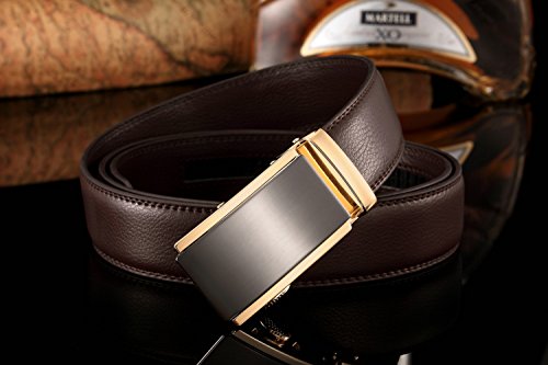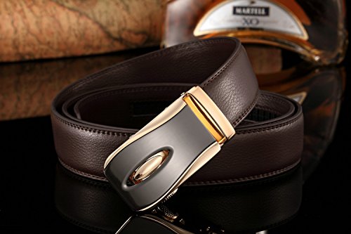 -. Title : Men's Leather Belt Sliding Buckle 35mm Ratchet Belt Brown