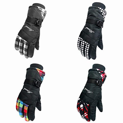 【안심 국내 발송】 선택할 수 있는 4색 레이디스 스키 글로브 스노보드 장갑 체크 무늬 귀여운 멋쟁이 프리크기방수 보온 스키 글로브 조정 가볍 경량