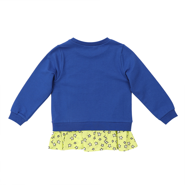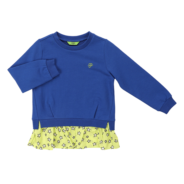 상세설명-기본라운드 면티셔츠에 별린트가 배색이 되어 롱티셔츠의 느낌으로 코디되는 상품입니다.