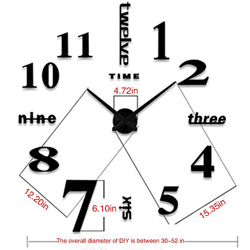 -. Title : MOYO Modern Mute Frameless Large 3D DIY Wall Clock Mirror Sticker for Room Home Decorations Big Timer