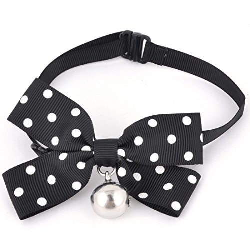 -. Feature : Product name : dog bowknot; fit neck girth max. : 37cm/14. 6" / Strap width : 1cm/0. 4"; bowknot size : 8. 5 x 6cm/3. 3" x 2. 4" (l*w) / Material : polyester, metal; bell diameter : 1. 5Cm/0. 6" / Main color : black, white; weight : 12g / Package content : 1 x dog bowknot