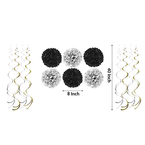 Bachelorette Party Decorations Kit - Black, Gold and Silver Set Bachelorette Party Balloons | Bachelorette Banner | 1 Diamond Ring Balloon, 15 Latex Balloons, 8 Swirls, 6 Tissue Paper Pom Pom’s