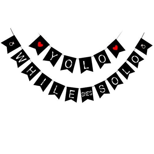 - 💍 All In One Pack - Bad Ass Bride’s it’s time for some serious celebration before the wedding. Enjoy your last wild night out before you say the words “I do” - The YOLO WHILE SHE’S SOLO Bachelorette Party Banner and balloons bridal shower decor can be hung up in your house, local bar, or pole dancing studio for the perfect girls night out.
