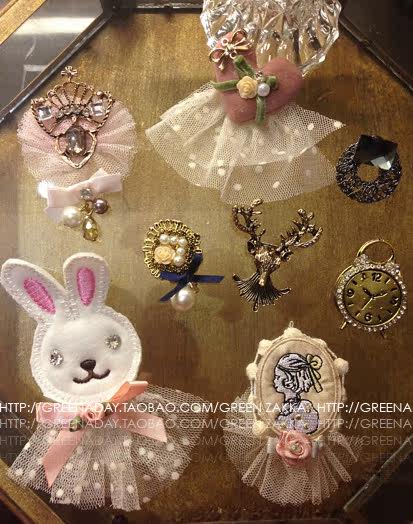 Custom handmade brooch over a hundred models. Use a variety of materials production. After being a Japanese clothing brand pick out several of the magazine. Collocation is universal accessories. You can make clothing for more than a very ordinary clothes there are bright spots on bags, hats, shoes can also be worn. Even carry small objects such as a pencil case cosmetic bag storage bag can be used as decoration.
