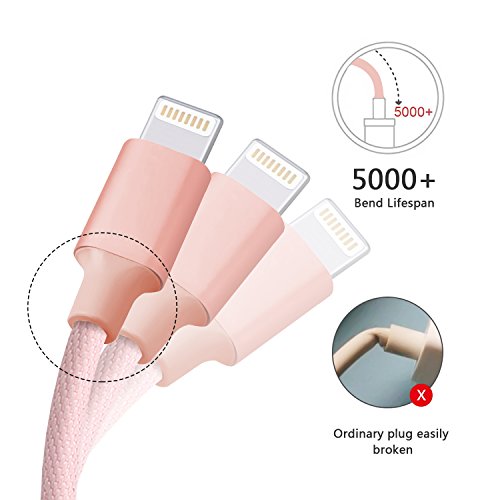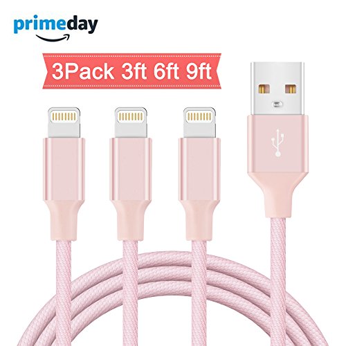 iPhone Charger Cable, Areker 3ft 6ft 9ft 3 Pack lightning to USB Cable iPhone Cord for iPhone 7 Plus 7 6s 6 Plus 5s 5c iPad Pro Air 2 iPad Mini 4 3 2 iPod Touch 5th 6th Gen Nano 7th Gen (Pink)