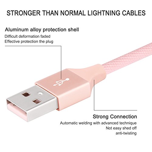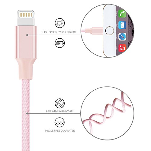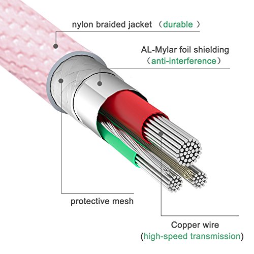 【Durable Nylon Braided Jacket】Environmental Friendly Nylon braided through 5000+ bends test. It is extremely flexible and tangle free. Pink nylon material is unique.