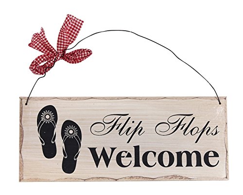 "Flip Flops Welcome" Wood Sign Door Decor 10"X4"