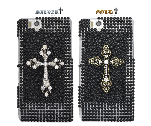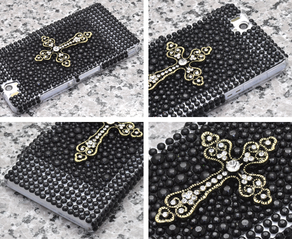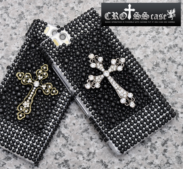 ラインストーンを散りばめたハードケースに、豪華なクロスを付けた存在感抜群のケースです。