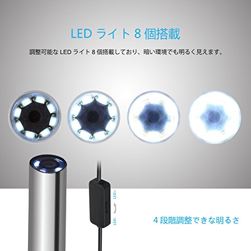 【8つブルーledライト付き】カメラ先端に8個のBlue LEDライトを搭載、明るさが調節可能、暗い環境に優れた色温度を持ち、画像の露出オーバーが減らさせます。