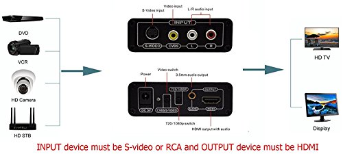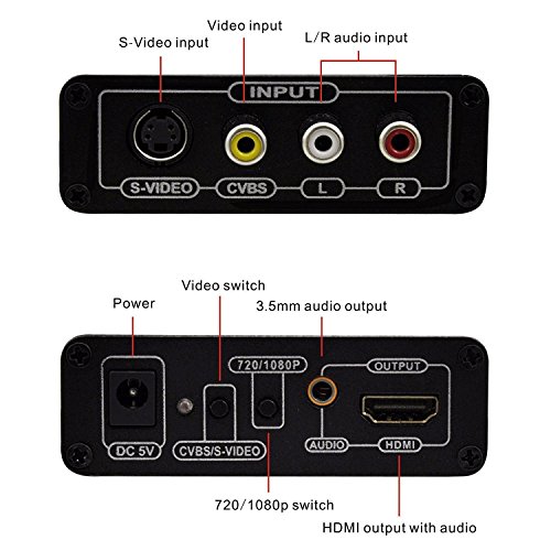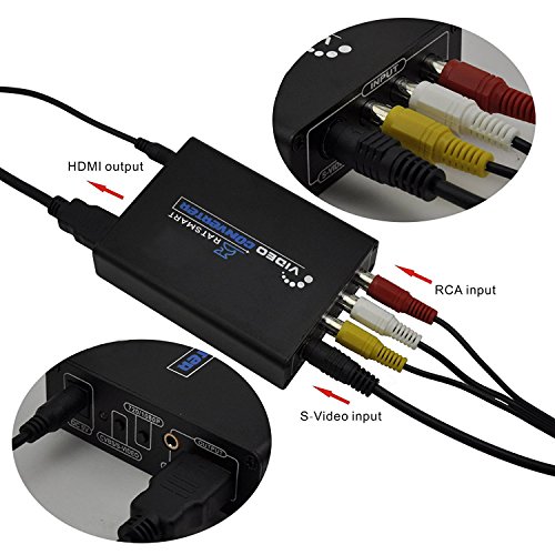 Studio : RatSmart Publisher : RatSmart Binding : Electronics Product Description Overview: 1. The Composite video and S-video to HDMI Scaler takes either Composite Video or S-Video as input and converts it to HDMI 1080P. It allows older analog devices to be integrated into HD home theater system. 2. It offers solutions for digital entertainment center, HDTV retail and show site, HDTV, STB, DVD and Projector factory, noise space and security concerns, data center control, information distribution, conference room presentation, school and corporate training environments. Features: 1. Up-scales Composite Video or S-Video up to full HD 1080p. 2. HDMI output is optional at 720P/60Hz or 1080P/60Hz. 3. Composite Video and S-video can stay simultaneous connection, and to be selected as the input them by the switch button. 4. Motion Compensated 3D Wavelet Video Coding Technology is applied to make the converted picture rich in color and more vivid. 5. Stereo audio is integrated into HDMI out as well as pass through 3.5mm audio output. 6. Input video signal - NTSC/PAL is automatically detected and adjusted. 7. DVI compatible by using HDMI to DVI adapter. 8. Settings of input signal output resolution is auto-stored when power on again. Specification: 1. Device Type: Composite RCA, S-video to HDMI 2. Interface Type: RCA, 4pin s-video in: HDMI out 3. Power Supply: Input--100-240V AC 50/60Hz; Output--5V 2A Package Contents: * 1 X Composit video/S-Video to HDMI Converter * 1 X Power supply * 1 X User Manual 0