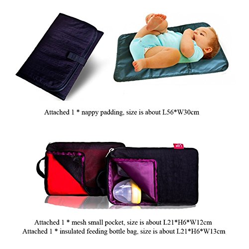 Description: This Bebamour Waterproof Diaper Bag Travel Baby Backpack Fit Stroller Changing Pad have beautiful look, lots pockets, spacious space. Additionally 2 STROLLER STRAPS are made in the shoulder straps that make it easy for you to hang the diaper bag on the stroller without using the shoulder straps. With the diaper bag backpack, function meets fashion to take you from birth to toddler hood and beyond in style.