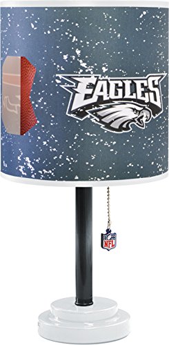 Studio : Idea Nuova - LA Publisher : Idea Nuova - LA Binding : Toy Product Description Add a touch of masterpiece to your decor with this NFL Philadelphia Eagles Table Lamp with Die Cut Lamp Shade. Featuring unique and creative designs of your favorite team, you can let your loyal spirit stand out whether you are in your dorm room or home. This vibrant NFL die cut table lamp is the perfect way to light-up your bedroom, playroom or study area. It is an excellent decorative accent and is small enough to fit easily onto any desk or side table. It features a durable metal base. It requires no assembly and is ready to use for indoors use only. The round, plastic shade and pull chain features unique Philadelphia Eagles designs in order to show your fanaticism. The lamp is powered by a 40 watt bulb that is not included. The bulb should not exceed 40 watts. Dimensions: 18" H x 9" W x 9" L; Lamp Base Dimensions: 5.5" Circumference. 0