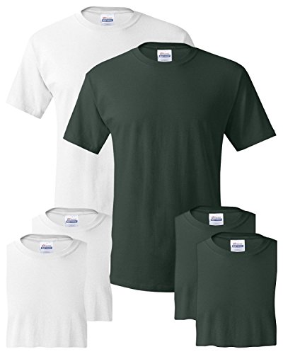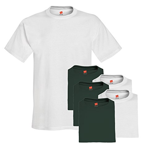 Hanes Men's 6-Pack Crew T-Shirt, 3 White / 3 Deep Forest, Medium