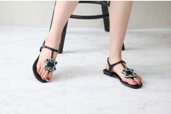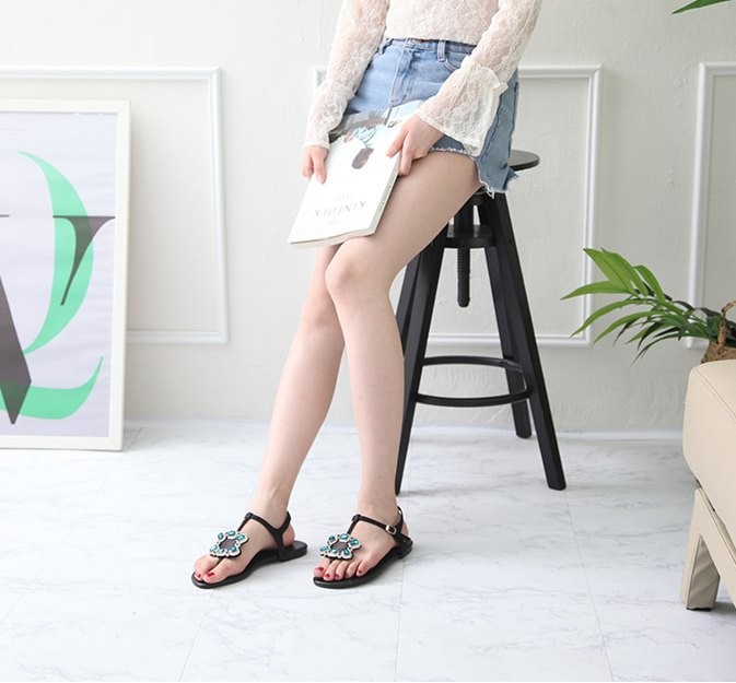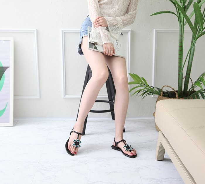 商品名:サンダル レディース トングサンダル ペタンコ フラットヒール ビジュー バックル 2018 夏 ファッション 靴 婦人靴