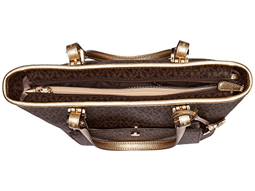 A generous selection of pockets and organizers line this perfectly-sized MICHAEL Michael Kors tote in signature monogram twill. Carry it around the clock for elevated style.