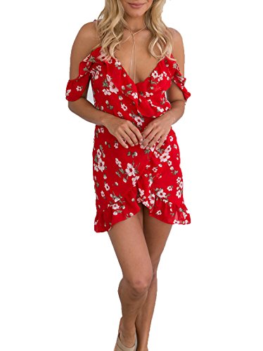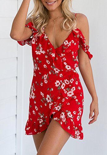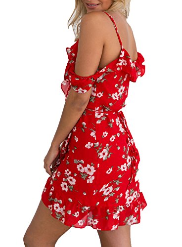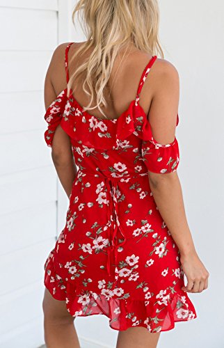 Title : ZESICA Women's Bohemian Floral Print V Neck Straps Wrap Dress Asymmetric Sundress Red