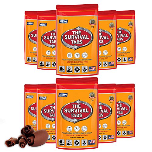 S.O.S. Food Supply Emergency Food Ration 800 Calorie Food 4-tab pack x 10 - 3 days / 72 Hour - 25 Years Shelf Life Gluten Free and Non-GMO - Chocolate Flavor