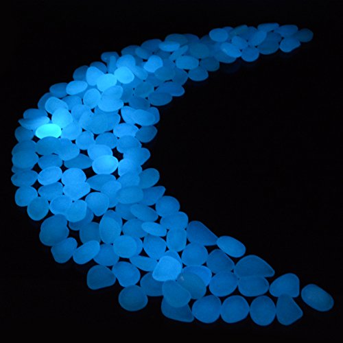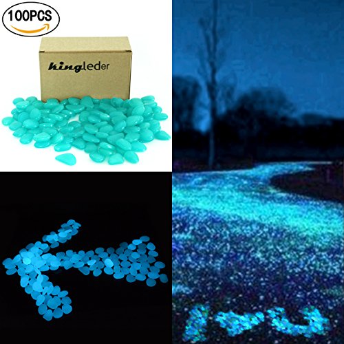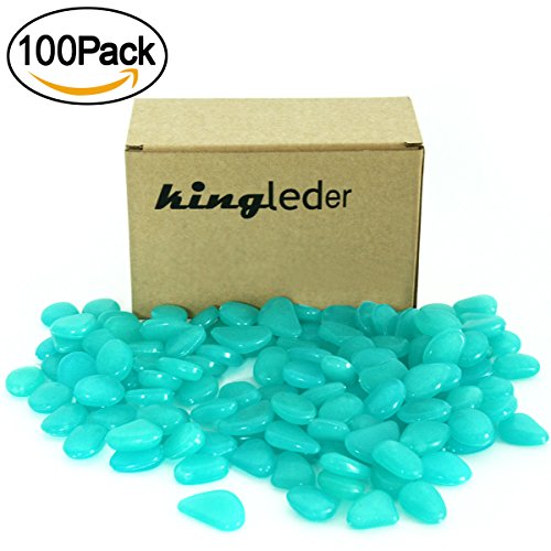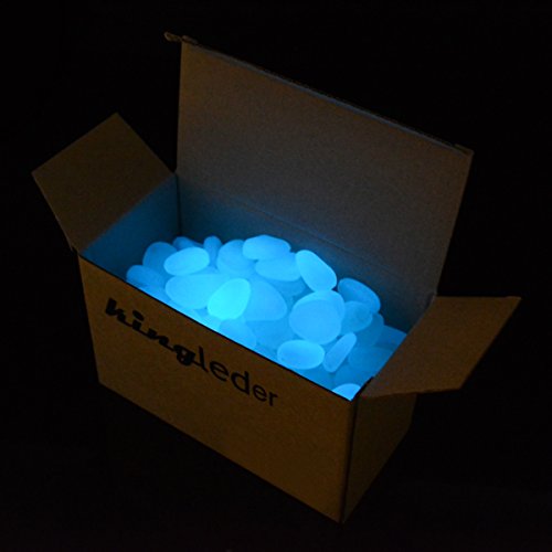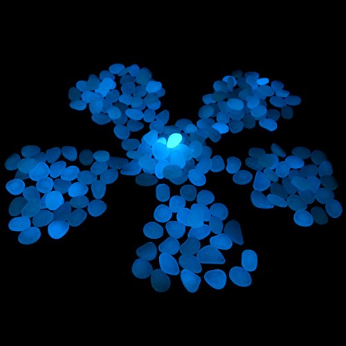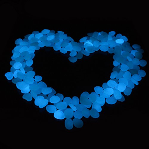 kingleder 100 Pcs Blue Glow in the Dark Garden Stone Pebbles Gravel for Walkways Yard Fish Tank Aquarium Decor (100, Blue)