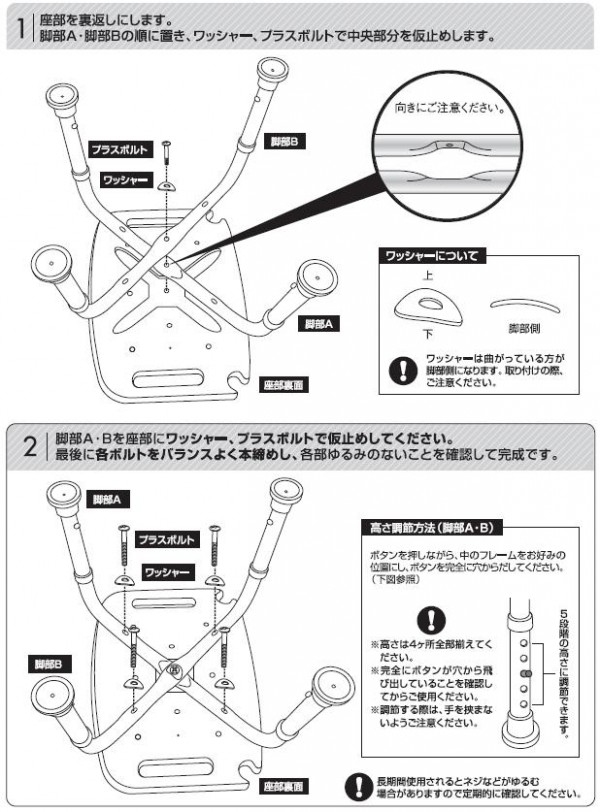 | セット内容 | 座部×1、脚部A×1、脚部B×1、プラスボトル(短)×5、ワッシャー×5、取扱説明書 |