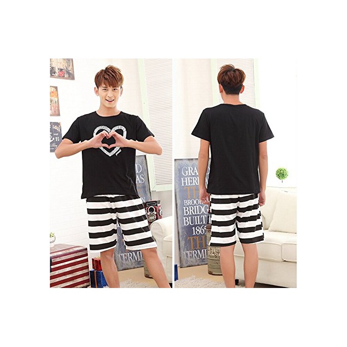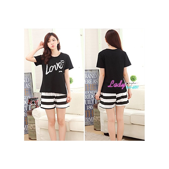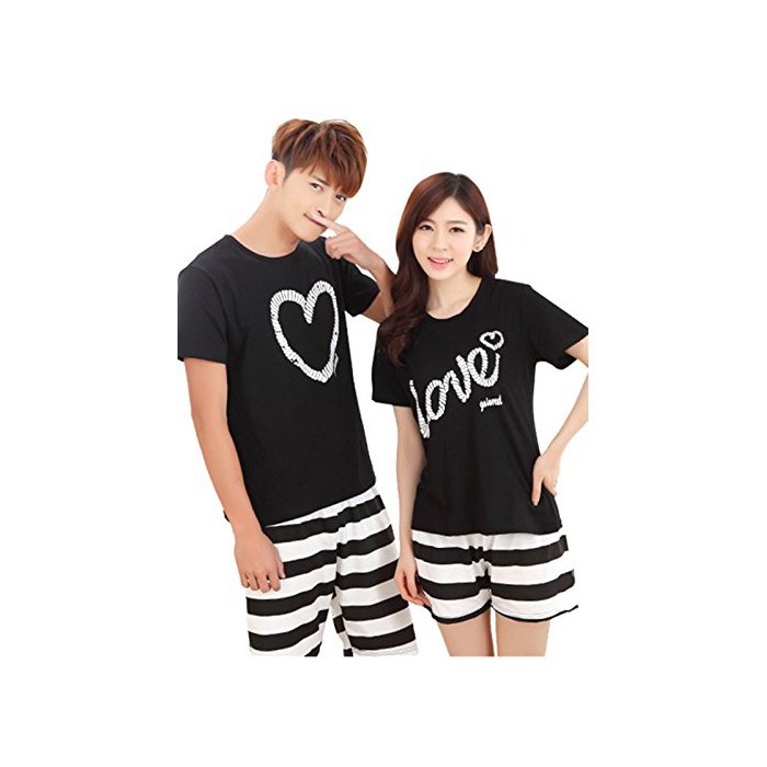 (레디 버드81)LADYBIRD81 페어 룩 하면반소매 페어 커플 파자마 룸 웨어 실내복 잠옷 상하 세트 레이디스 맨즈 하트 코튼 선물 큰 사이즈 갖춤에 남녀 프린트