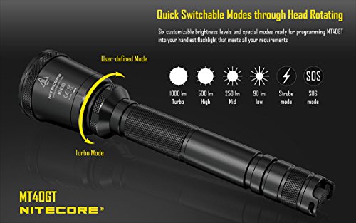 4. Great Brightness: Nitecore MT40GT is 2*18650 Tactical Flahlight, Incorporated Precision Digital Optics Technology, White Light Outputs 1000 Lumens