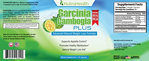 -. Binding : Health and Beauty -. Brand : Nutra Health -. EAN : 0630125997024 -. Feature : A VEGAN WEIGHT LOSS PILL WITH PROFOUND EFFECTIVENESS: Grab 3 of the 90 vegan capsules once a day. Swallow them with some water. Let the 2100 mg of Garcinia Cambogia Extract to maximize your body's fat burning abilities, thus helping you drop several lbs of fat almost effortlessly! / WITH 95% HCA, THIS IS PROGRAMMED TO MAKE YOU LEAN: Imagine your perfect reality. The constant cravings disappearing, hunger no longer being there and your waist line getting slimmer day after day. That's NOT an imaginary world. That's the tangible effects of Nutra Health's Garcinia with 95% HCA / YOU WILL HEAR EVERYBODY SAYING THIS: "How did you lose all that weight?" while looking at you with a slack-jawed face, unable to believe how much your body has changed! / A BREATHTAKING BODY: That turns everyone's head and attention towards yourself. Superchanrge your weight loss with the finest Garcinia Cambogia supplement on the market. Best all natural weight loss product for men and women! / SAFE, HEALTHY & FDA APPROVED FACILITY: You can rest assured that Nutra Health has taken into consideration all the good manufacturing policies as well as applied the most stringent quality control. Our Garcinia Cambogia Formula is 100% natural and safely manufactured according to cGMP regulations in established facilities registered by FDA. -. IsAdultProduct : 0 -. Label : Nutra Health -. LegalDisclaimer : The information on this Amazon listing is not intended as a substitute for professional medical advice. If you have, or suspect to have any medical condition you are urged to consult your health care provider. These statements have not been evaluated by the Food and Drug Administration. This product is not intended to diagnose, treat, cure, or prevent any disease. Medical conditions can only be diagnosed by a licensed medical physician. -. Manufacturer : Nutra Health -. MPN : 630125997024 -. PackageQuantity : 1 -. PartNumber : 630125997024 -. ProductGroup : Health and Beauty -. ProductTypeName : HEALTH_PERSONAL_CARE -. Publisher : Nutra Health -. Studio : Nutra Health -. Title : NutraHealth Pure Garcinia Cambogia Extract 95% HCA - Ultra Potency: 2100 mg Appetite Suppresant - 90 Vegan Capsules - 100% Natural Weight Loss Supplement For A Slim Body -. UPC : 630125997024