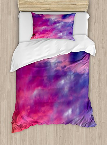 (Ambesonne)/Bedding Bath/Bedding/DIRECT FROM USA/Sky Decor Duvet Cover Set by Ambesonne, Magical Cloudy Sunset Idyllic Shades of Pink on Air Gra...
