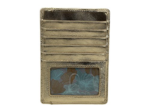 Take this Vintage Euro Slide Card Holder Wallet from Hobo to-go. The minimalist design is perfect for the woman who doesn't have time to fumble around with those larger wallets or one just looking to head to the store real quick. The genuine leather exterior features 5 credit card slots, a zip pocket, a slip pocket, and ID window. Measures 5.5" x 4" x 0.25".Feature