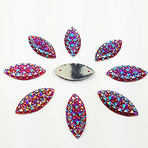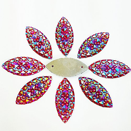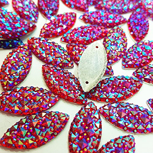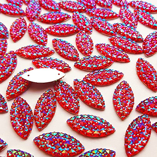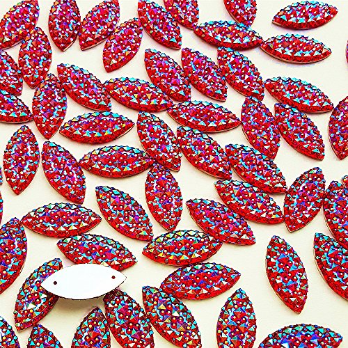 11x23mm Crystal Clear Red Rhinestones Flat Back Sew On Resin Horse Eye Gems Fancy Strass Stones For Clothing Dress Craft 60PCS 2 Holes