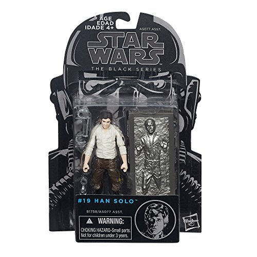 -. Binding : Toy -. Brand : Star Wars -. Color : Brown,Light Gray -. EAN : 0630509298112 -. Feature : Highly articulated figure looks like Han Solo / Figure comes with blaster / Careful details make him look just like the Star Wars character / No. 19 Han Solo -. Genre : strategy -. IsAdultProduct : 0 -. ItemPartNumber : B1758AS0 -. Label : Hasbro -. Manufacturer : Hasbro -. Model : B1758AS0 -. MPN : B1758AS0 -. PackageQuantity : 1 -. PartNumber : B1758AS0 -. ProductGroup : Toy -. ProductTypeName : TOYS_AND_GAMES -. Publisher : Hasbro -. Size : Standard -. Studio : Hasbro -. Title : Star Wars The Black Series Han Solo 3.75" Figure -. UPC : 630509298112 -. Warranty : No Warranty