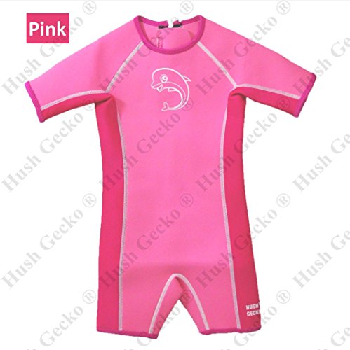 HushGecko Kids Thermal Swimsuit, UPF50+ Protection, Neoprene Swimwear 3mm Thickness, Swim Suit Wetsuit Aqua Warmer(Size 1,Pink)