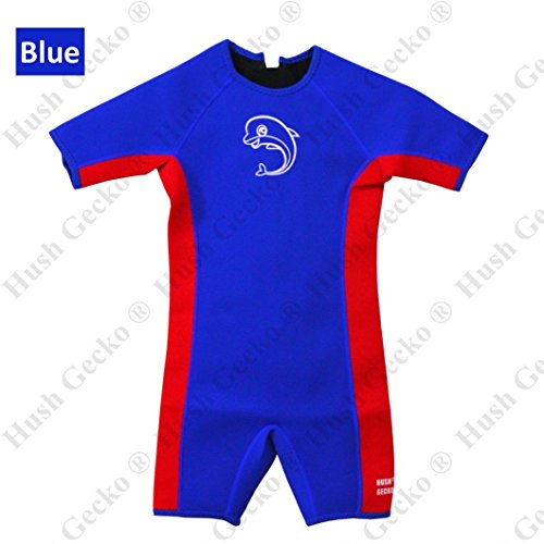 HushGecko Kids Thermal Swimsuit, UPF50+ Protection, Neoprene Swimwear 3mm Thickness, Swim Suit Wetsuit Aqua Warmer(Size 1,Blue)
