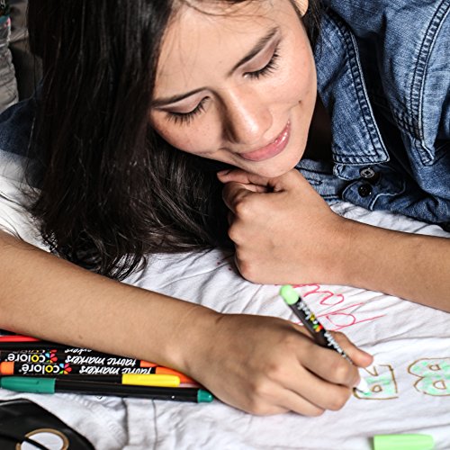 - VIBRANT COLORS - These Colore Professional Grade Fabric Pen Set includes 20 richly pigmented high quality fabric markers, among the colors are black, blue, green, yellow, orange, red, pink and purple colors.