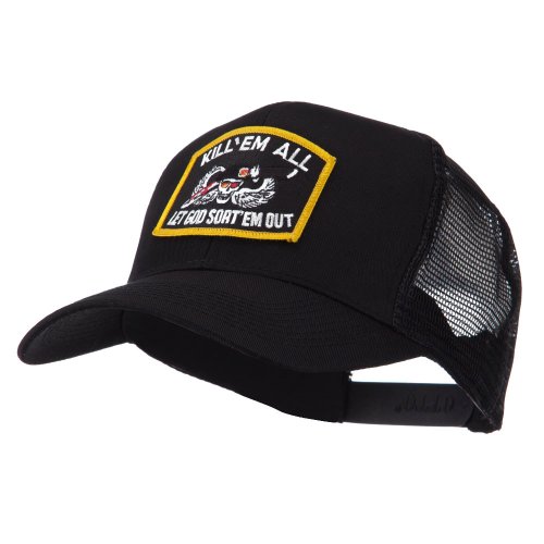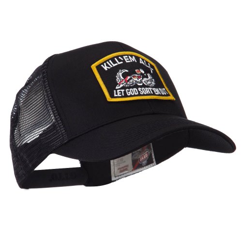 Binding : Apparel Product Description Our Kill Skull and Choppers Embroidered Military Patched Mesh Cap is a great addition to your military patch cap collection. This unique military patch cap includes different styles and designs of skull and choppers patches on the front crown. These embroidered patches of cap represent its own military symbol, so you can choose the perfect skull patch cap that you want. This black baseball cap features a 6 paneled crown with 4 mesh back panels, allowing your head to be well ventilated at all times. Inside of cap is lined with a hatband for that comfortable fit you desire. This skull and choppers patch meshed cap is especially great for those bikers, military soldiers and for other military uses. durable embroidered patch ball caps are also available in variety of other styles of US military services such as Army, Navy, Marine, Air Force, Airborne, Retired and others. Choose your favorite military patch cap now! 0