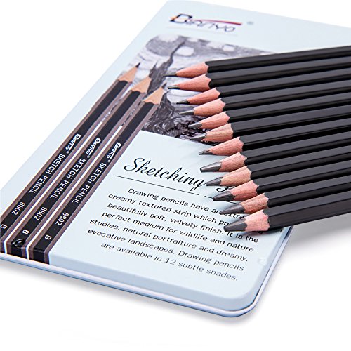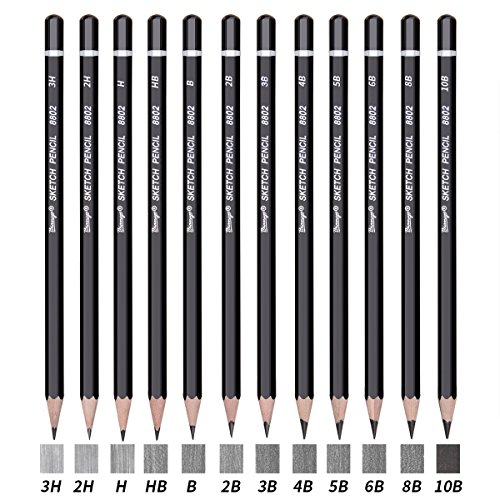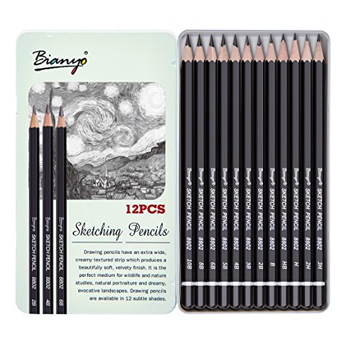 Bianyo Sketch Pencil Drawing Pencils Art Pencils Drawing Kit(12-Piece,3H, 2H, H, HB, B, 2B, 3B, 4B, 5B, 6B, 8B, 10B)