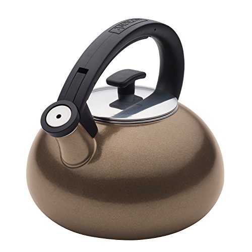 Turn teatime into dreamtime, whether it's a single cup or an entire teapot full, with the efficiency and style of the gorgeous, durable Anolon(r) Allume Teakettles 2-Quart Enamel on Steel Teakettle. Anolon(r) kitchenware brings distinction and durability to every single product, and this beautiful teakettle is no exception. The kettle features a sturdy, stylish enamel on steel exterior featuring rich, appetizing color to add style to any stovetop or countertop. The steel construction helps resist warping and dinging, and the gorgeous enamel exterior is easy to clean. A tight-sealing lid holds heat and steam inside, and is finished with a sturdy elegant knob. The push-release pour spout operates with a touch of the finger, and a convenient whistle sounds when water is at a boil. This Anolon(r) Allume teakettle is perfect for that first morning cup of Irish breakfast blend or organically-grown peppermint. A midday mug or iced glass of brewed vanilla rooibos makes a perfect pick-me-up. And at suppertime or after dinner, a hot beverage sets a cozy mood to help the day unwind. Handwashing recommended, the teakettle is suitable for all stovetops except induction. Add the kettle to your stovetop for an elegant note, and partner it with the other Anolon(r) kitchenware designed to inspire culinary creation. Pour with a distinctive touch of style whenever the teakettle's on, with the sumptuous exterior color of the sturdy, easy-cleaning Anolon(r) Allume Teakettles 2-Quart Enamel on Steel Teakettle.Feature