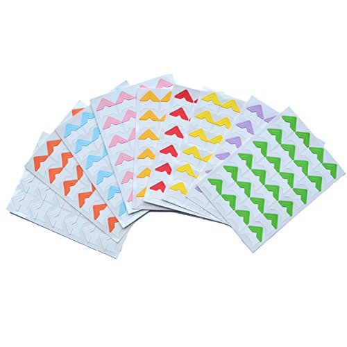 9 Sheets Multi-Colored Photo Mounting Corners Sticker Self-Adhesive Cardstock for DIY Scrapbooking, Picture Album, Personal Journal, Dairy (Total 216Pcs)