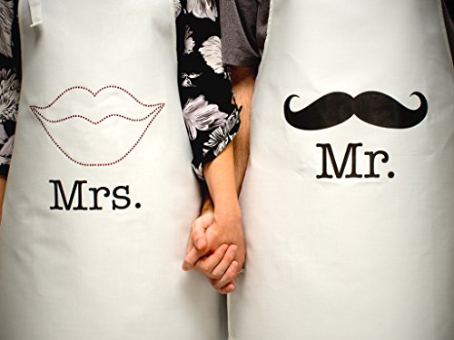 - Contains 1 Mr. Apron with Mustache and 1 Mrs. Apron with Red Rhinestone Lips