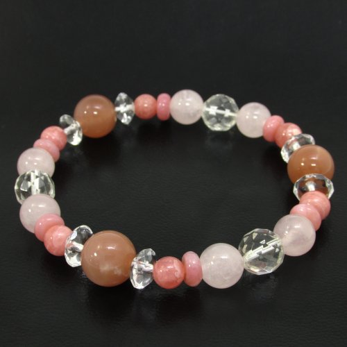 신쥬쿠은의 창고 8mm옥 로즈 쿼츠 잉카 로즈 핑크 오팔 오렌지 moonstone 팔찌 길이 약17.5cm (레이디스L)