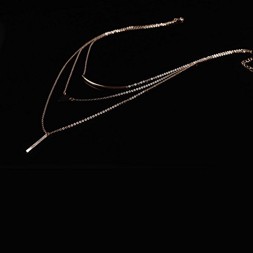 FXmimior 3 Tiers Triangle Geometry Pendant Chain Long Multilayer Bar Party Wedding Necklace Jewelry For Women (gold)