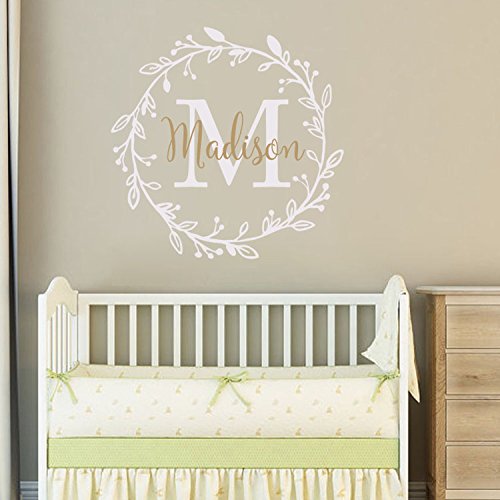 -. Title : BATTOO Monogram Name Decal - Nursery Wall Decals Sticker - Wall Decal for Girls - Monogram Wreaths - Name Decal - Initial Wall Decal Flower Damask Vinyl Wall Art