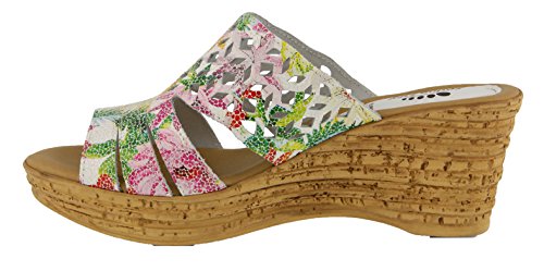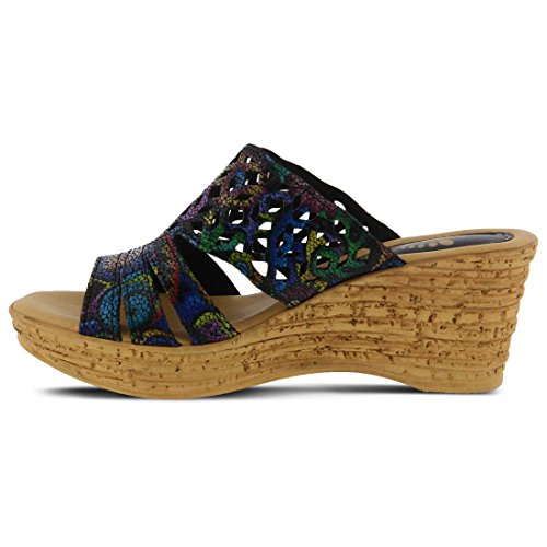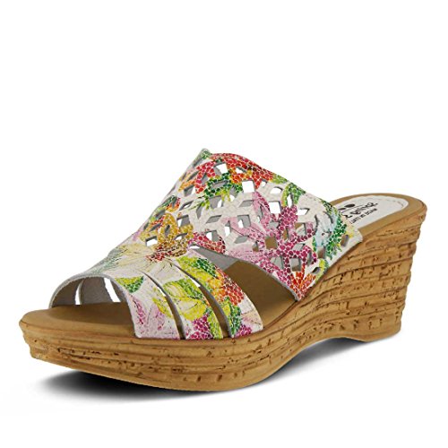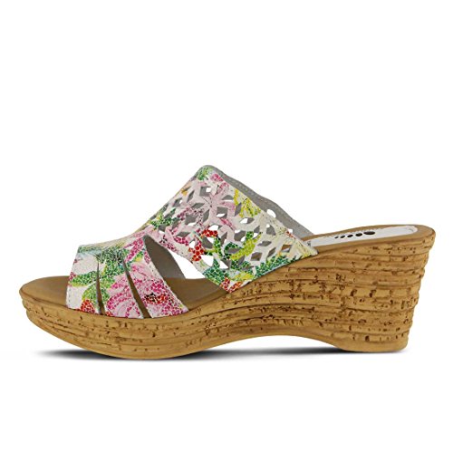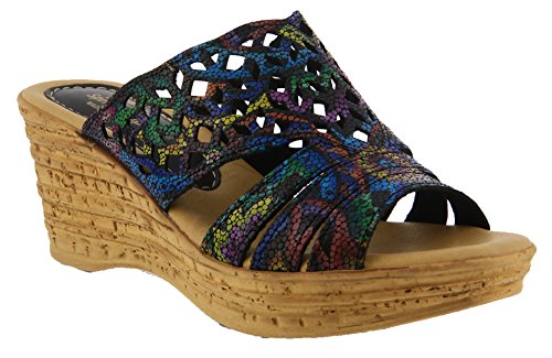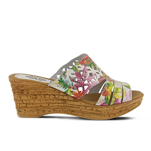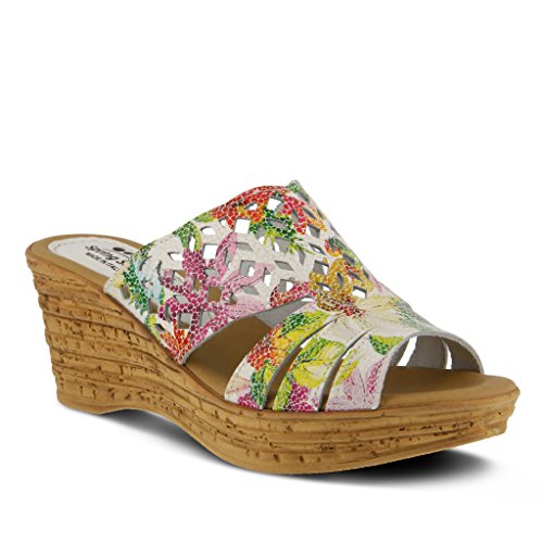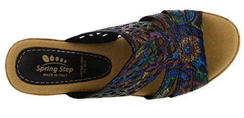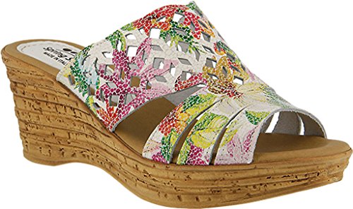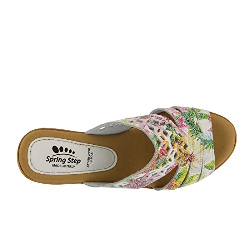 Product DescriptionMosaic-inspired floral designs set in rich, Italian leather are supported by a thick, cork-look wedge platform giving the Viniko wedge sandal from Spring Step an exceptional combination of style and comfort.0