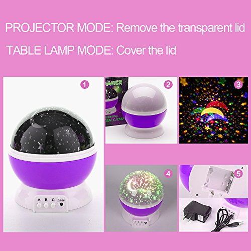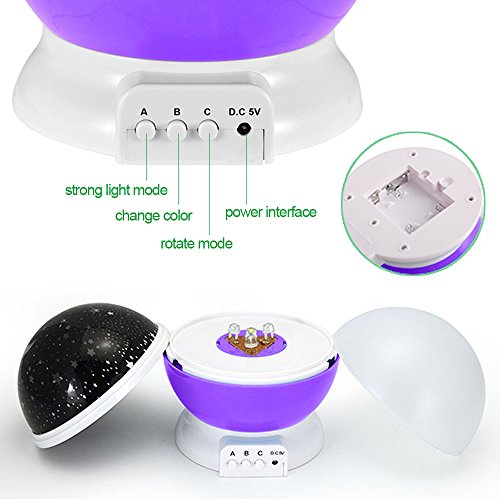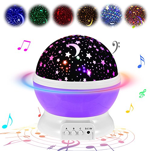 - TWO FUNCTION: Constructed with the removable white dome, you can make it operate as a night light or have a romantic projection show of the moon and stars! 12 Kinds Soft Musical projector lamp with soft lights ,You can feel the pulse of the music.It's a great night light for young children scared of the dark at bedtime. Cute design and romantic atmosphere, the young Children are slowly falling asleep in music.