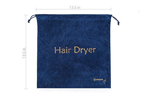 - HAIR AND BEAUTY – bigger than your average drawstring velvet bag, it makes an ideal hair dryer travel bag, it fits a full size hair dryer! Also use for makeup and other personal belongings. It measures 13.5 x 13.5 inches