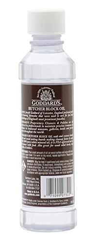 -. Feature : WOOD CONDITIONER - Keep your wooden cutting boards, kitchen islands, utensils, and serving trays in P.R.Istine condition. This oil helps to clean and seal wooden surfaces, making them look brand new. Ideal for wooden cutting boards that are constantly being used and washed, the oil absorbs into the wood to help condition and protect it. / PREVENTS DAMAGE - This oil forms a protective barrier against dirt and stains. It prevents juices and liquids from seeping into the wood and keeps the natural moisture in. Your wooden kitchen utensils won't dry out, which prevents cracking. This oil is essential for keeping butcher blocks in P.R.Istine condition. / NATURAL & KOSHER CERTIFIED - This product is made from pure and natural food-grade white mineral oil. Specially blended for use on culinary items, this oil is treated to help seal the wood and prevent foreign liquids from penetrating its surface. This helps keep the bacteria out and protects the finish from wear. / FDA-APPROVED - Goddard's Butcher Block Oil is food-grade and safe for use, you can now clean your chopping board with confidence. The special formula won't contaminate food and is non-toxic. / PROUDLY MADE IN THE U.S.A. - This cleaning oil is manufactured in the U.S. with the strictest standards for premium quality. With over 170 years of experience in manufacturing cleaning products, Goddard's brings only the best when it comes to keeping your cookware looking and feeling brand new.