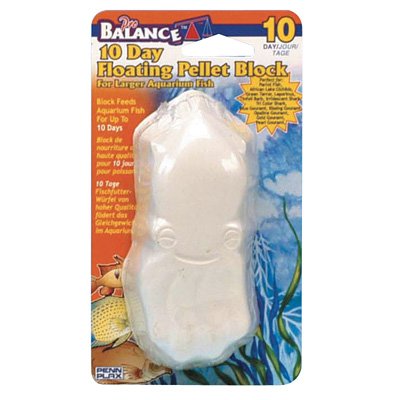 Studio : Penn-Plax, Inc. Publisher : Penn-Plax, Inc. Binding : Misc. Product Description Pro Balance® feeding blocks help you enjoy your vacation without worrying about feeding your fish! Pro Balance® 10-Day Cichlid Feeding Blocks are specially formulated for your larger fish who like a bigger meal. Perfect for parrot fish, cichlids, gouramis and other similar size fish these blocks are made using a nutritious blend of Pro Balance® pellets and fortified with vitamins minerals. Simply place the block in your aquarium and the block will submerge and slowly dissolve releasing the nutritious Pro Balance® floating food while also helping to neutralize your aquarium water. Each time-release block will last for up to 10 days while you enjoy your time away! Sized for 10-15 gallon aquariums, each block is 5" x 1.75" x 1". One block is sufficient for a 10-15 gallon tanks for up to 10 days depending on the pH level and water temperature. A minimum temperature of 72 degrees F and pH of 6.6 to 7.0 is recommended. Highly alkaline water will slow down food release. Block measures 5"x 1-3/4"x 1". Ingredients: Calcium sulfate, Calcium magnesium, Fish pellets, Fish meal, Oat meal, Shrimp meal, Dried daphnia, Hydrochloride, Vitamin B-1, and Vitamin B-2. 0